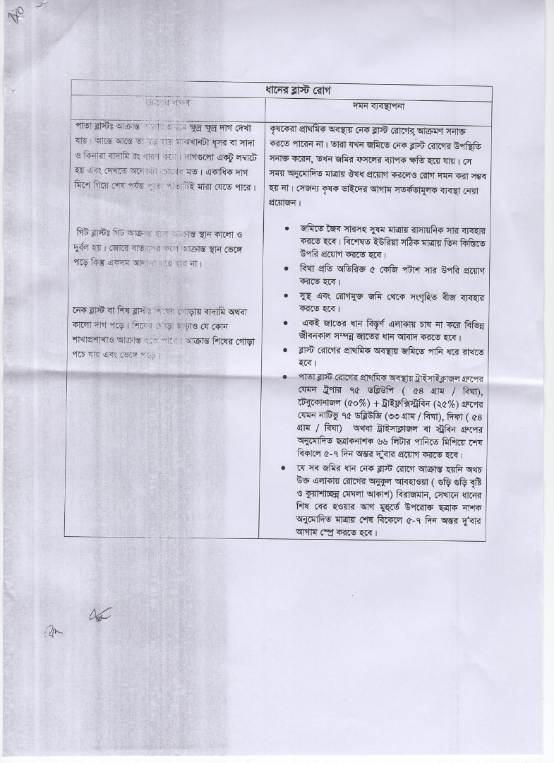 রোপা আমন ধানে ব্লাস্ট রোগ দমনে করণীয়